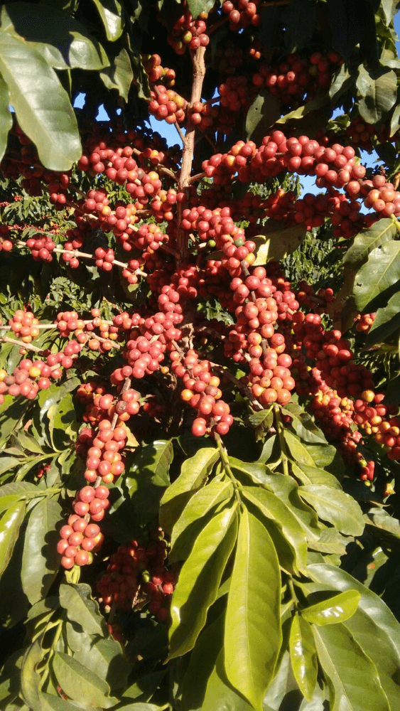 Porte baixo, resistente à ferrugem, frutos vermelhos, maturação intermediária e de sementes pequenas.
