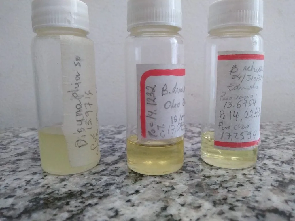 A extração dos óleos essenciais foi realizada no laboratório de fitoquímica da Universidade Federal de São João del-Rei (UFSJ/CCO), em Divinópolis, e caracterizadas pela professora Suzan Bertolucci da Universidade Federal de Lavras (UFLA), e pelo professor Júlio Onésio da UFSJ, campus Sete Lagoas.
