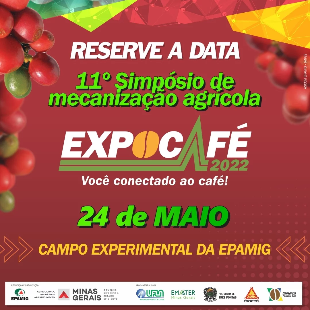 11º Simpósio de Mecanização da Lavoura Cafeeira: 24 de maio, Três Pontas (MG), inscrições prévias.