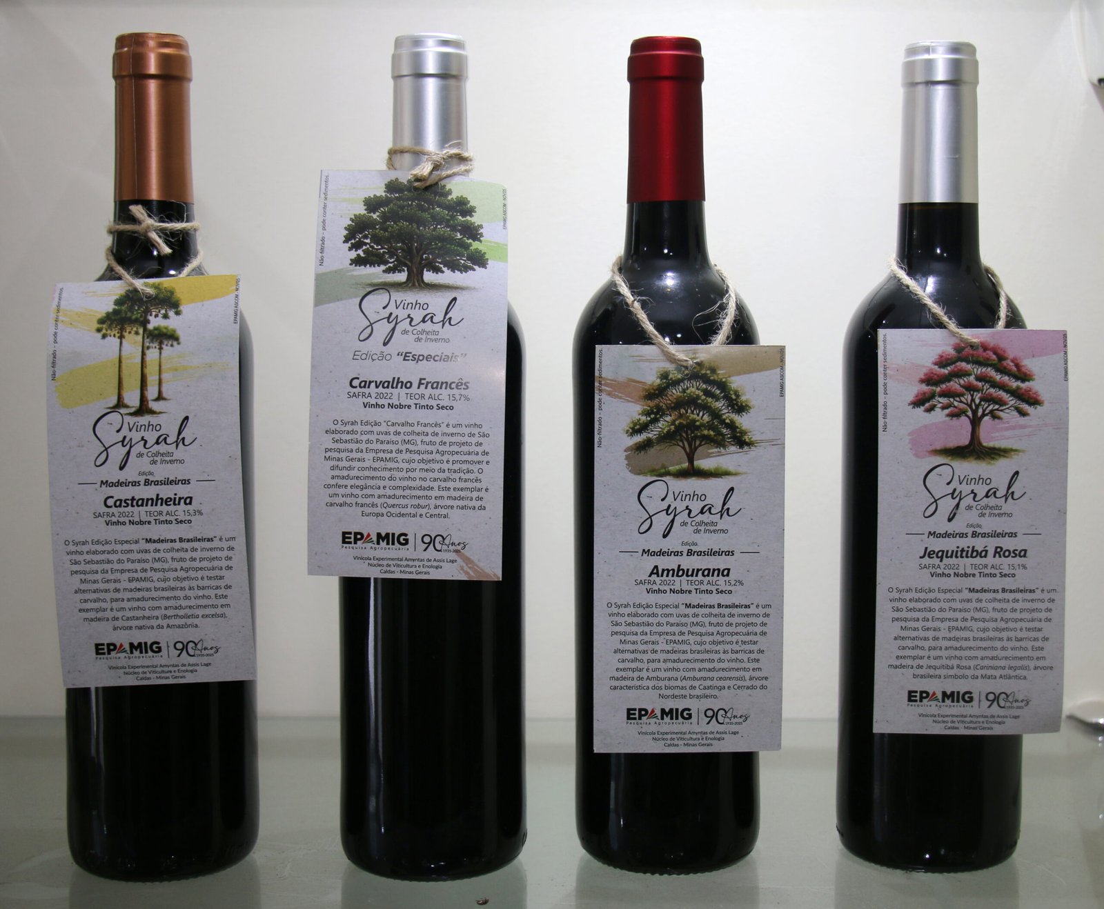O vinho Syrah edição “Madeiras Brasileiras” é elaborado a partir de uvas de colheita de inverno de São Sebastião do Paraíso (MG). Apesar de a variedade ser a mesma, as características da bebida se diferem de acordo com o potencial de cada madeira.