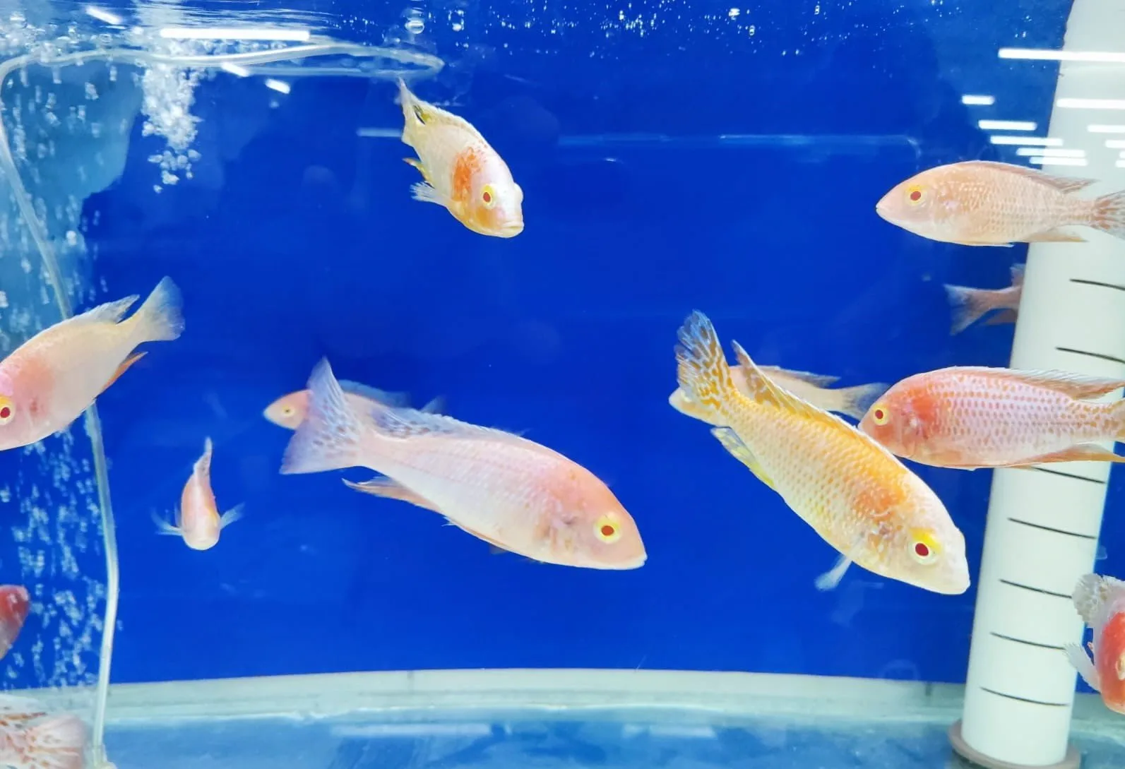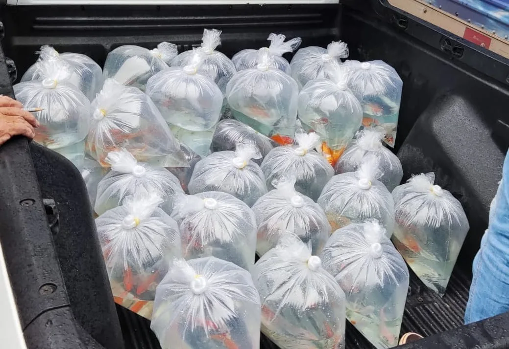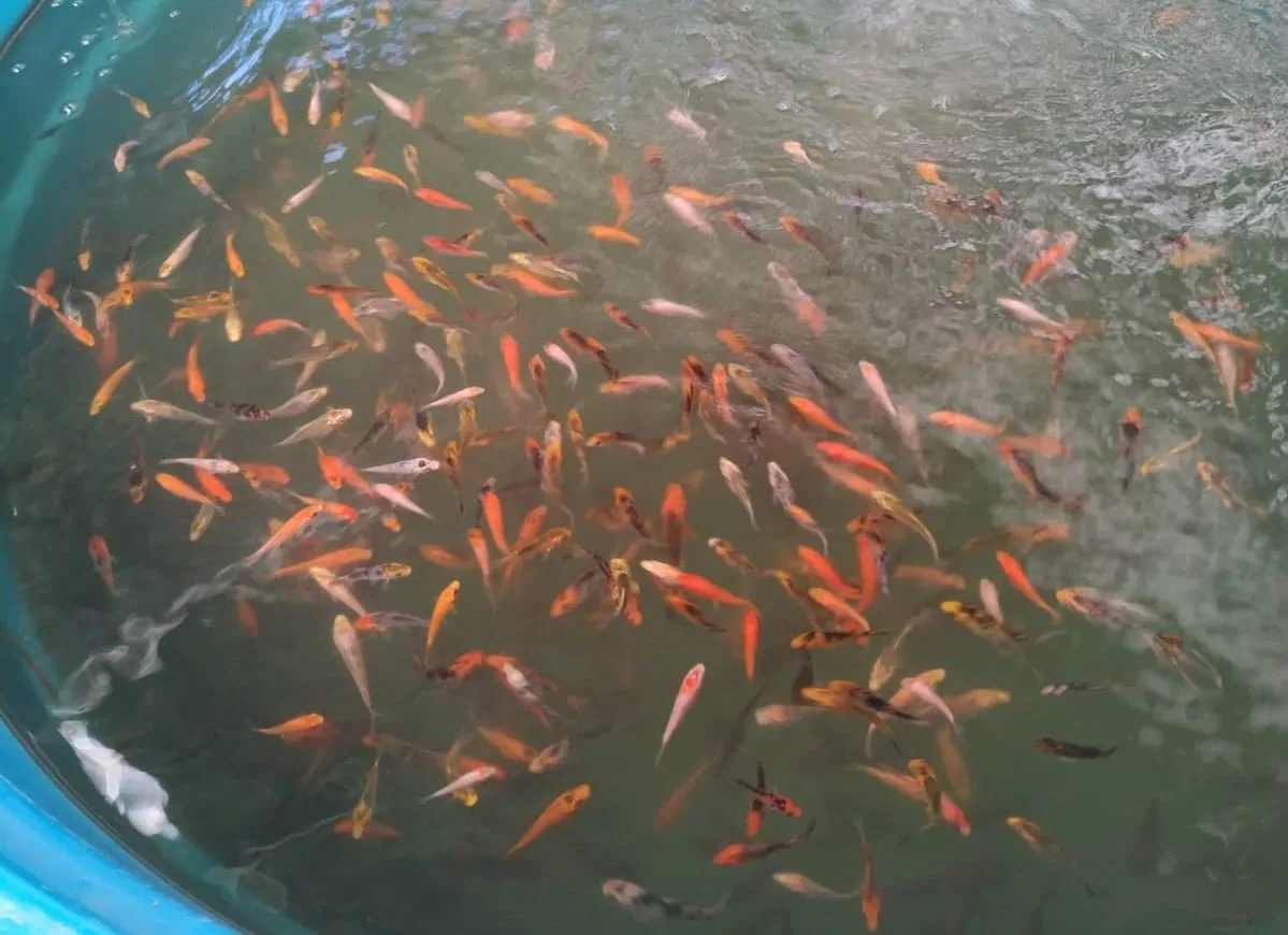 No mês de setembro foram adquiridos 1000 exemplares de carpas especiais (de coloração marcante), 750 carpas véu, 200 kinguos RedCap, 200 kinguios vermelhos, 200 kinguios cometas cálicos e 50 kinguos pandas. “Além desses, estão pra chegar também 40 acarás bandeira, 20 barbus, 30 bettas, 50 colisas, 60 espadinhas, 20 guppys, 60 molinésias, 60 platis, 40 cascudos, 30 paulistinhas, 30 trichogaster, 30 limpa vidros, e 10 ramirezis”, informa o pesquisador Alexmiliano Vogel.