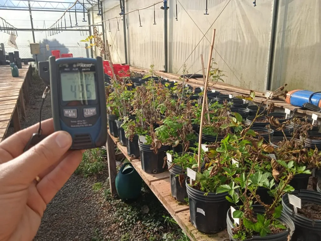 Segundo o pesquisador da EPAMIG Sul, e coordenador dos trabalhos, Emerson Gonçalves, um dos experimentos mostrou que algumas plantas resistiram bem à falta de frio e não deixaram de produzir frutos. “Conduzimos trabalhos com uma variedade de framboesa chamada Heritage, dentro de casas de vegetação, onde há ausência total de frio e as temperaturas podem chegar a 40ºC. A planta apresentou excelentes índices de desenvolvimento e observamos que, em termos de produção, ela gerou tantos frutos quanto os exemplares cultivados ao ar livre, na presença de frio”, relata Emerson.