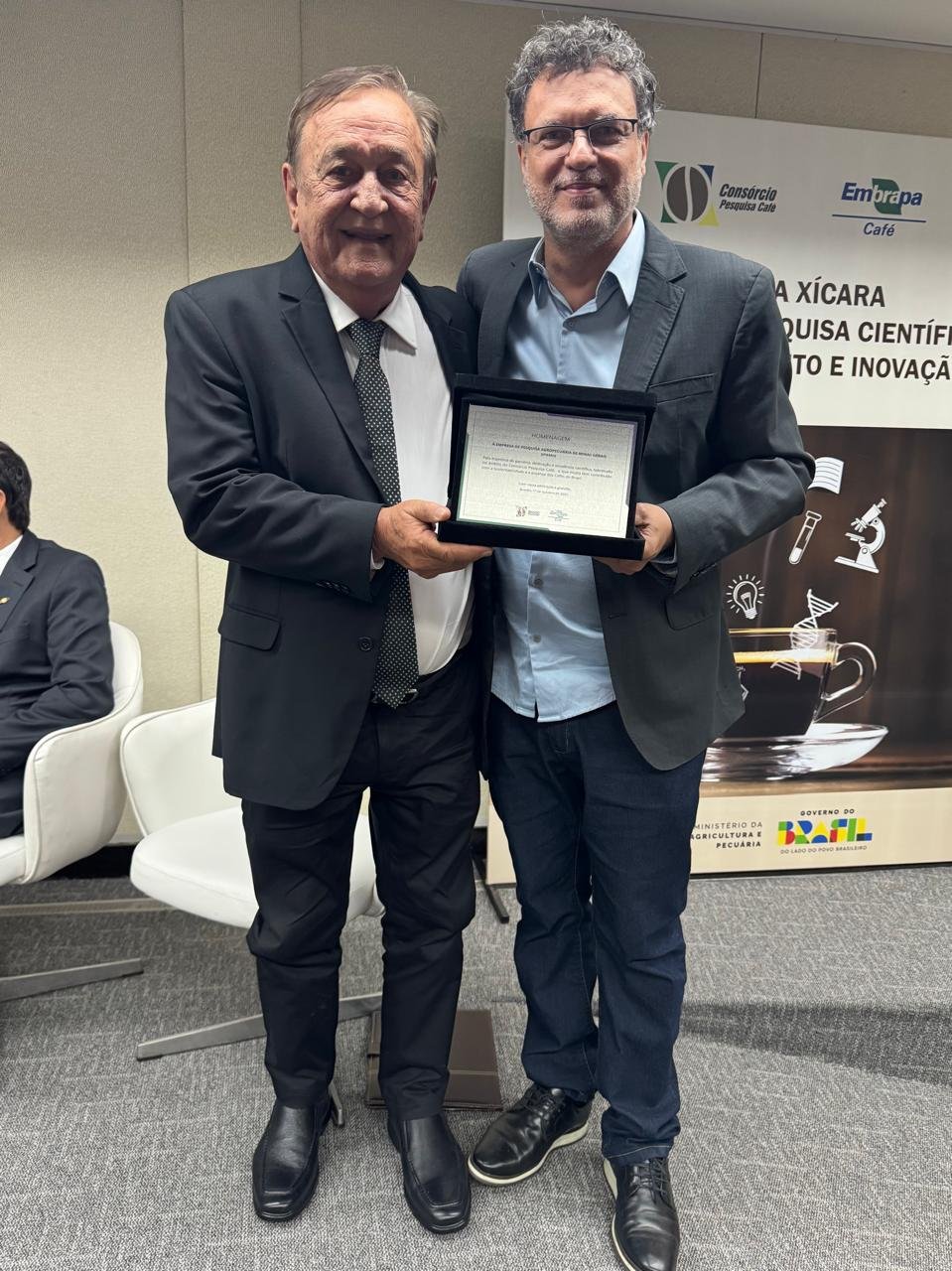 (Brasília – 1/10/2025) A Empresa de Pesquisa Agropecuária de Minas Gerais (EPAMIG) participou nesta quarta-feira, 1 de outubro, em Brasília, da solenidade comemorativa aos 25 anos Embrapa Café. Na ocasião, a instituição mineira foi homenageada por sua contribuição na consolidação do Consórcio Pesquisa Café.