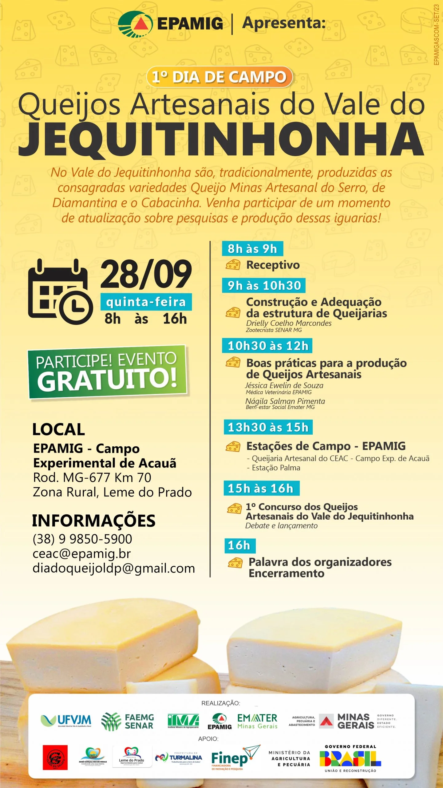 Evento: 1º Dia de Campo de Queijos Artesanais do Vale do Jequitinhonha (presencial e gratuito)