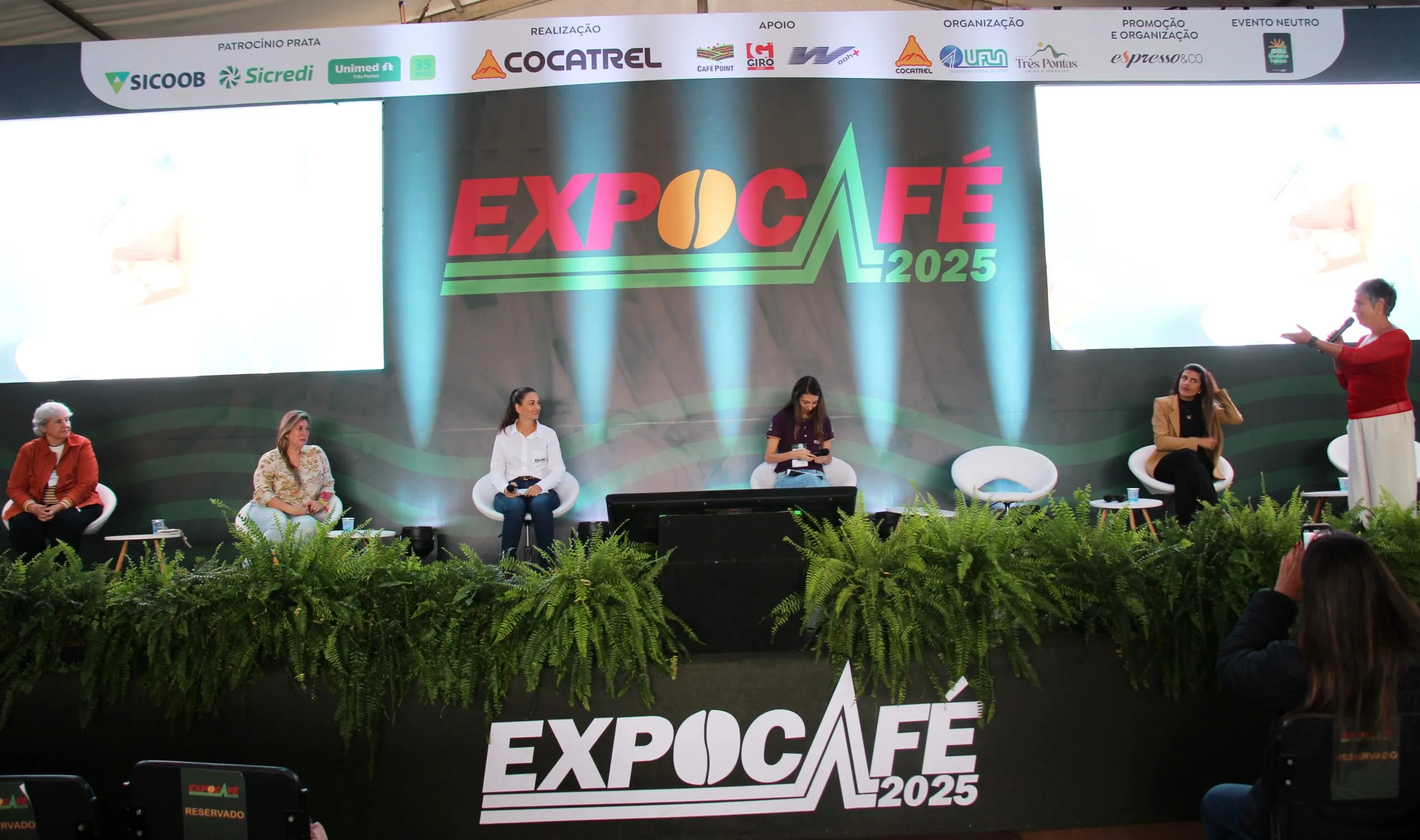 (Três Pontas –  29/5/2025) – A programação da Expocafé 2025 abriu espaço para as cafeicultoras, nesta quinta-feira, 29 de maio. Organizada pela Empresa de Pesquisa Agropecuária de Minas Gerais (EPAMIG), em parceria com a Cocatrel, a 5a. Expocafé Mulheres trouxe o tema: “Mulheres no Café: sustentabilidade, empreendedorismo, políticas públicas e novas perspectivas”.