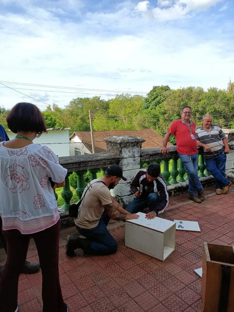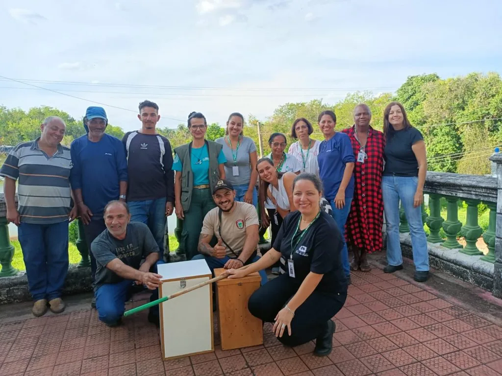 Equipe do CE de Santa Rita mostra as caixas de captura, confeccionadas durante a capacitação. Foto: Acervo Juliana Maria de Oliveira/Epamig