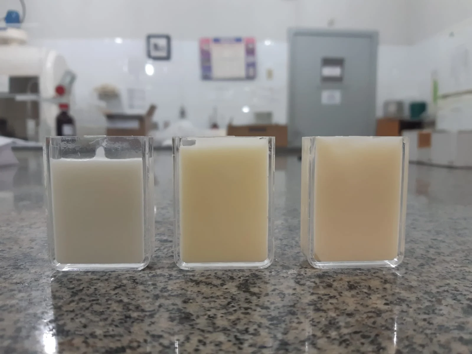 Nesta primeira etapa foram produzidos três tipos de produtos: um apenas com a gordura do leite, um com substituição parcial da gordura do leite pela gordura de coco e um sem adição da gordura do leite. “Como teste inicial, nós resolvemos fazer a substituição total ou a parcial com 50% de cada gordura. Vamos fazer análise de composição centesimal dos tratamentos das diferentes formulações, análise de textura, análise de cor, de derretimento. Com relação à fabricação, a gente já viu que é possível, que é viável, e que resultou em um produto bom. Na sequência vamos fazer as estatísticas para ver se há alguma diferença em relação ao produto tradicional”, explica Denise.